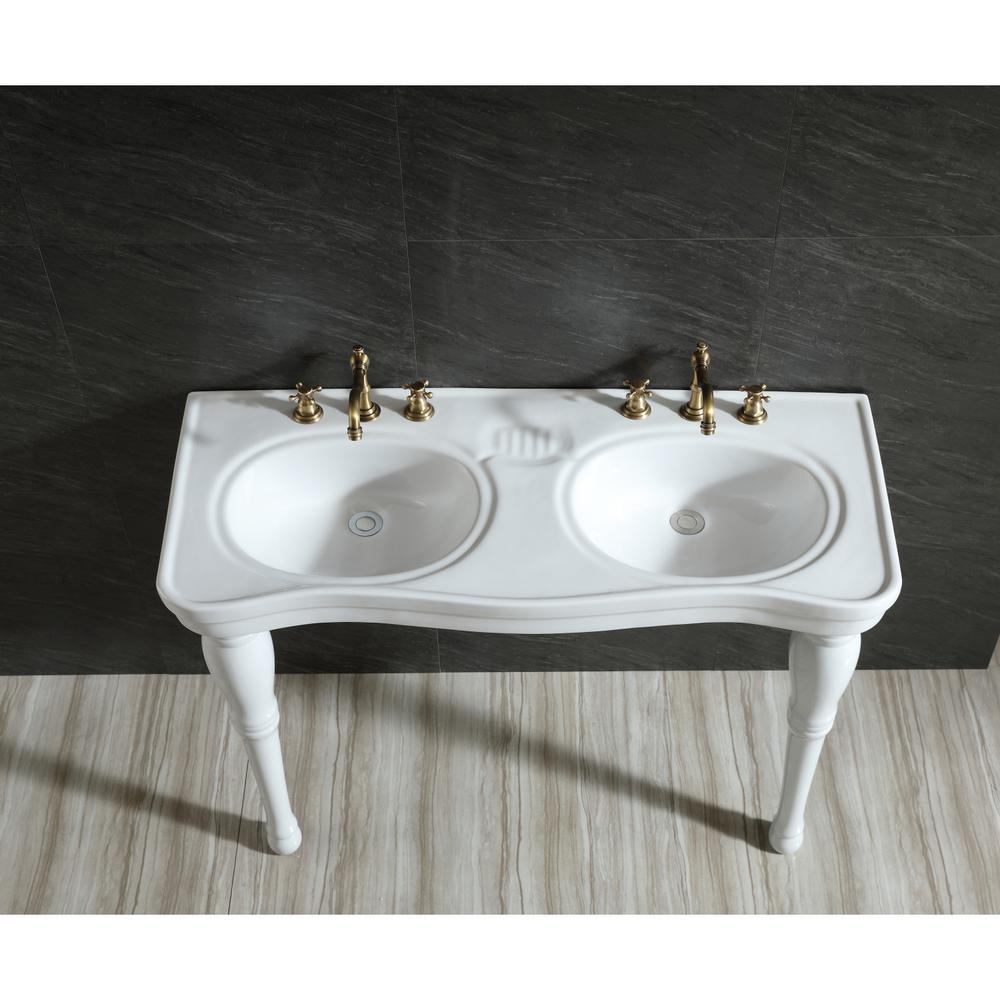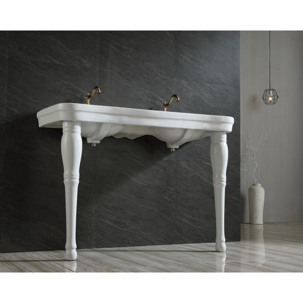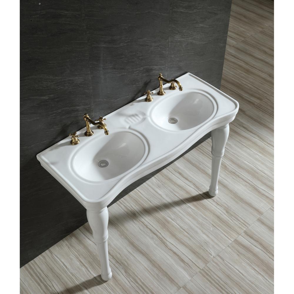 Exquisitely styled for your contemporary taste, this console sink will enhance your bathroom living space. With a beautiful ceramic countertop, this console sink set is a long-lasting, durable, and elegant addition to your bathroom. The ceramic console sink (3-hole) features a washbasin and steel base that is available in a handful of finish ... Single Sink Vanities Double Sink Vanities. More by Type. ... Console Sinks (60) Pedestal Sinks (3) Wall Mount Sinks (45) Sink Shape. Geometric (1) Other (9) Oval (11) Rectangle (39) Features. Console Sink Only. ADA Compliant (3) Console Sink Only (60) cUPC Certified (51) Made in
