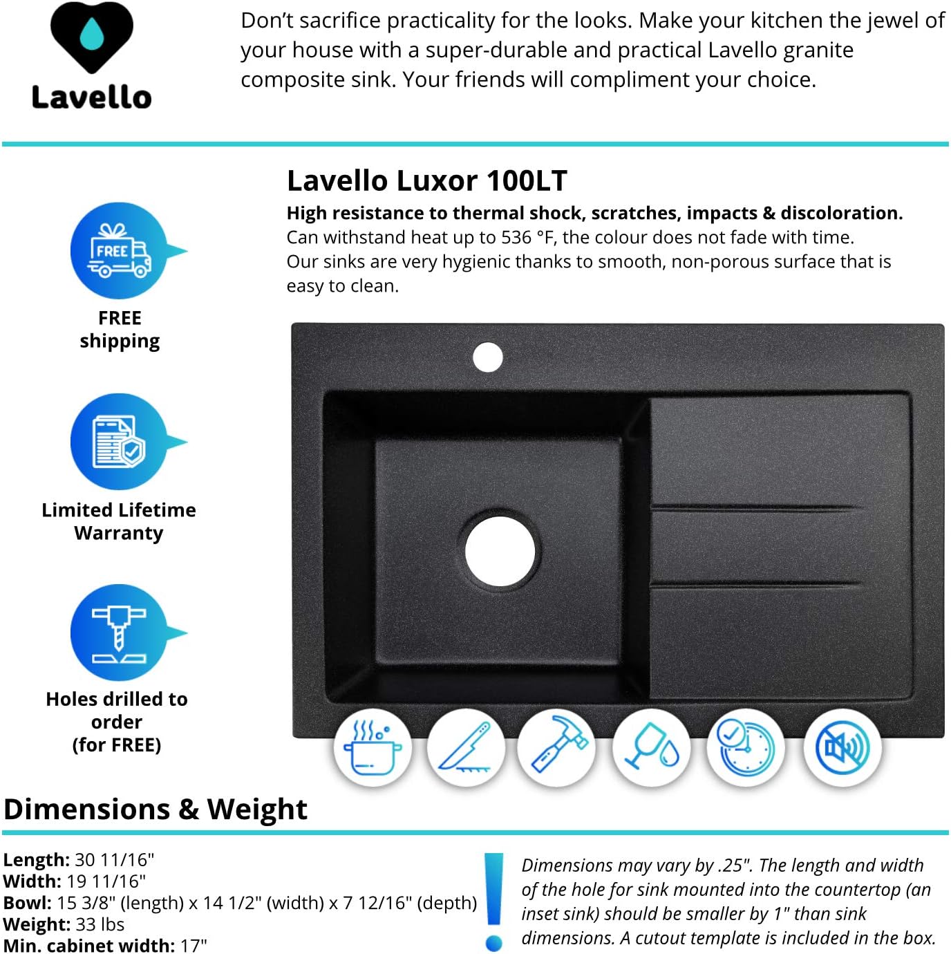 Gray Sink Lavello Luxor 100LT 31" Granite Sink Composite Drop In Single Bowl Big Range of Kitchen Sinks (Gray Drainboard Postion: Left) 5 out of 5 stars 4 $249.00 $ 249. 00 Contact Lavello ltd 40 Tooting High str., Tooting Broadway SW17 0RG, London If you have any questions concerning our products please call us at 020 8123 3452 (Monday - Friday from 9 a.m. to 5 p.m., ) or send us an email: sales@lavello-sinks.co.uk LavelloManufacturer of granite sinks Manufactured according to order 100% made in EU Top quality Over 40 sink models We offer granite sinks for all kitchen